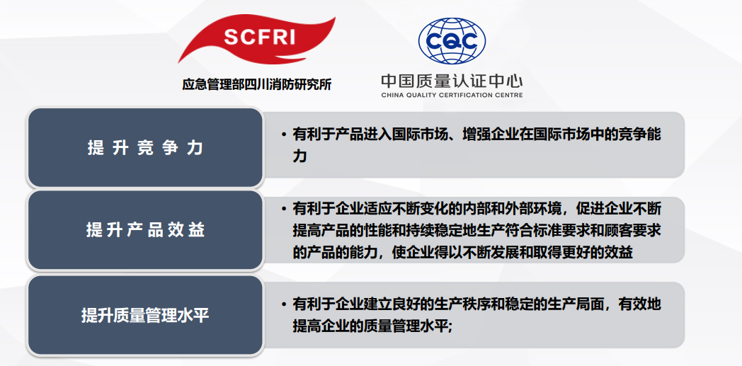 為滿足企業進一步提高質量管理水平、提高市場競爭力的需求,發揮自愿性認證“拉高線”的作用,中國質量認證中心(CQC)聯合應急管理部四川消防研究所(國家防火建筑材料質量檢驗檢測中心)研發并推出了建筑材料及制品燃燒性能分級認證業務。