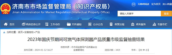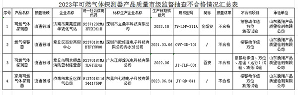 2023年市級監督抽查共抽查流通領域和生產領域可燃氣體探測器產品15批次。