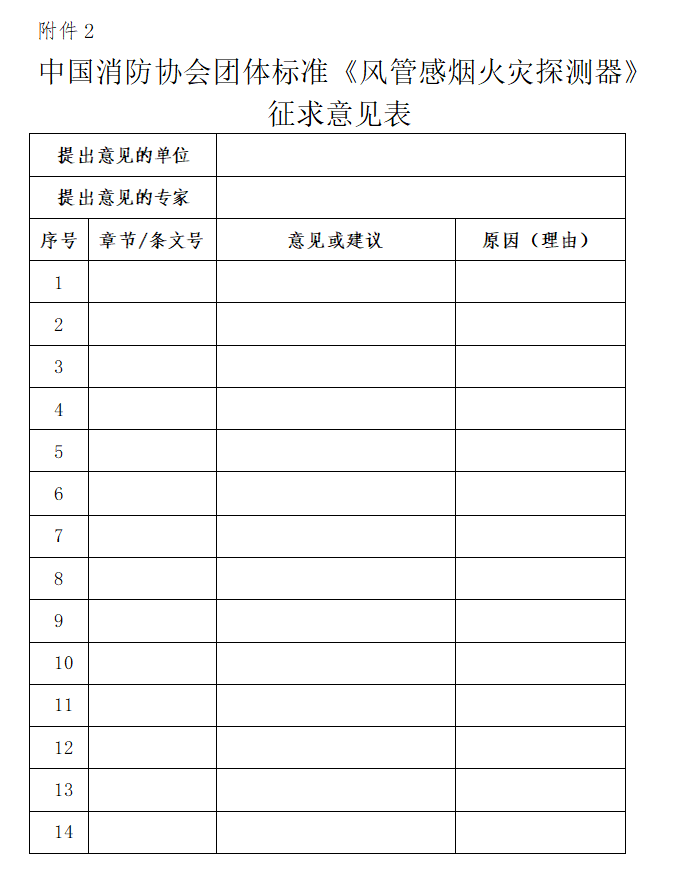 2.中國消防協(xié)會(huì)團(tuán)體標(biāo)準(zhǔn)征求意見表