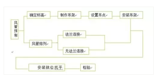 15、風閥:調節閥等部件安裝必須將手柄配置在便于操作部位,防火閥安裝必須與設計相符,氣流方向務必與閥體上的標志尖頭相一致,嚴禁反向。