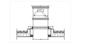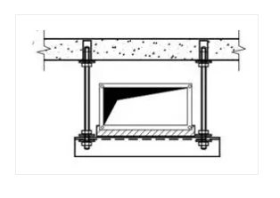 (2)支吊架的固定采用以下幾種方法:①膨脹螺栓法。本方法適用于規格較小的風管支吊架的固定。本工程支吊架固定大多數采用此法,通過在樓板、梁柱上打膨脹螺栓固定支吊架。②焊接法。本方法適用于風管規格大,使用膨脹螺栓固定不能滿足強度時,采用預埋件焊接固定支吊架。支架固定形式見下圖。