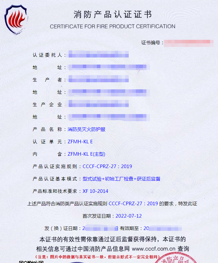 消防員滅火防護服認證檢驗要求